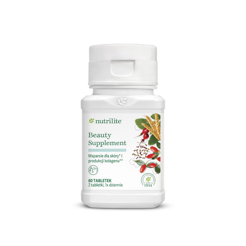 Jeśli szukasz produktu w stylu „beauty supplement”, który pasuje do codziennej pielęgnacji, Nutrilite™ Beauty Supplement jest prostym wyborem: 2 tabletki dziennie i skład oparty o witaminę C, cynk oraz witaminę A. Formułę uzupełniają ekstrakty roślinne (goji, dzika róża, pestki winogron) oraz ceramidy z pszenicy.